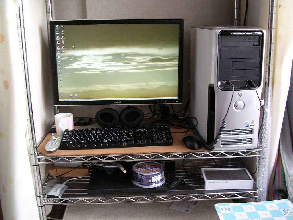 下の段には、この間買ったDVD-Rと、今まで使っていたIBMのノートパソコンが置いてあります。